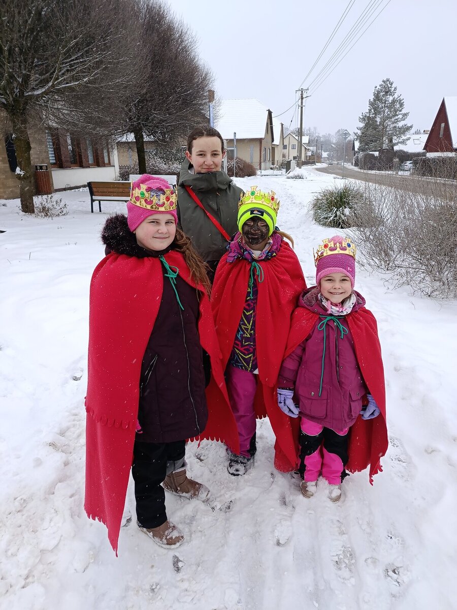 Ani chladné počasí našim králům nevadilo. S radostí zpívali a koledovali dům od domu.